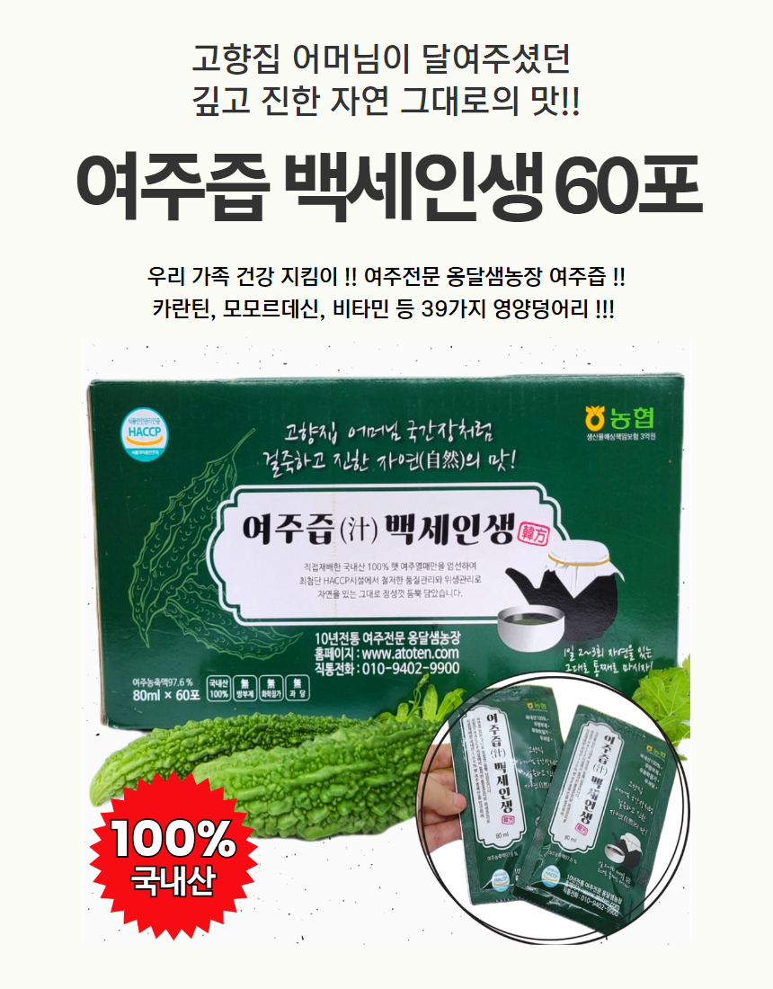 -여주를 아낌없이 듬뿍 넣고 만든 진하고 걸쭉한 진짜 오리지널 여주즙 백세인생 60포-