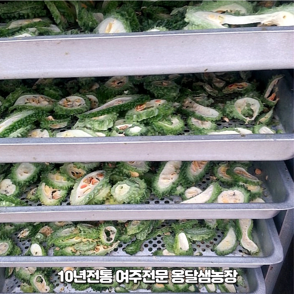 얇게 썬 생여주를 건조기에 넣고 여주의 영양성분이 잘 보존되도록 10년전통 노하우의 비법으로 온도, 습도, 시간 등을 잘 맞추어 명품 건 여주를 생산합니다.